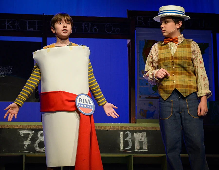 A loose, revue-like structure allows for a great deal of flexibility in staging and cast size in this energetic musical, which follows Tom, a young schoolteacher, who is nervous about his first day of teaching. He tries to relax by watching TV, when various characters representing facets of his personality emerge from the set and show him how to win his students over with imagination and music. Memorable songs as “Just a Bill,” “Lolly, Lolly, Lolly” and “Conjunction Junction” bring his lesson plans vividly to life.