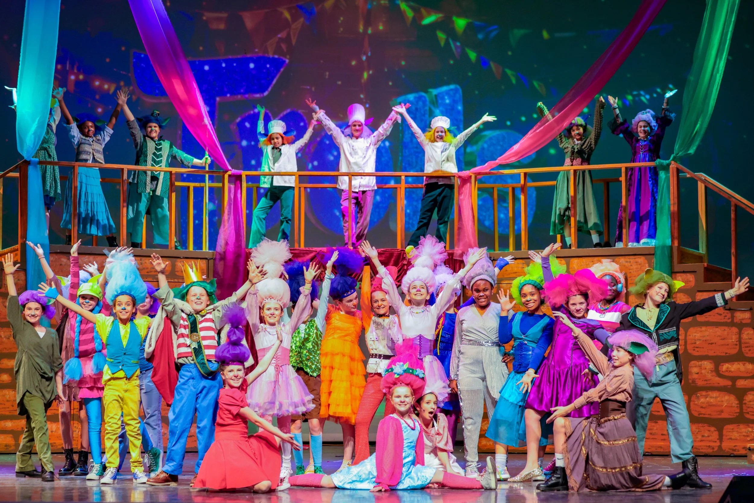 Trolls the Musical Jr. follows Poppy, Branch, and their friends as they prepare a show to meet the high expectations of a foreign emissary threatening their cheerful world. Set after the first movie, the musical explores themes of friendship, perseverance, and the importance of putting on a great show, even when faced with challenges. The vibrant land of Bergenland is thrown into disarray when an emissary arrives with demands that could disrupt their way of life. The Trolls must revamp their performance to meet his standards, proving that the show must go on, no matter what.